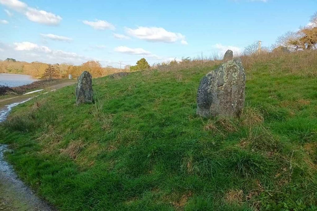 Zitou, lui, renifle avec enthousiasme chaque recoin de ce sentier ombragé. Au fil de notre avancée, une plaine attire mon regard : d’étonnants mini menhirs y sont éparpillés, ajoutant une touche mystérieuse à ce décor déjà idyllique.