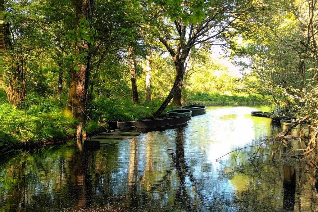 Le marais de Brière est le deuxième plus grand de France après la Camargue. C’est une mosaïque de canaux, roselières et prairies inondables qui abrite une faune sauvage exceptionnelle. Au fil de la promenade, on peut croiser des hérons, des aigrettes, des Poules d’eau, des passereaux… et parfois même surprendre un martin-pêcheur.