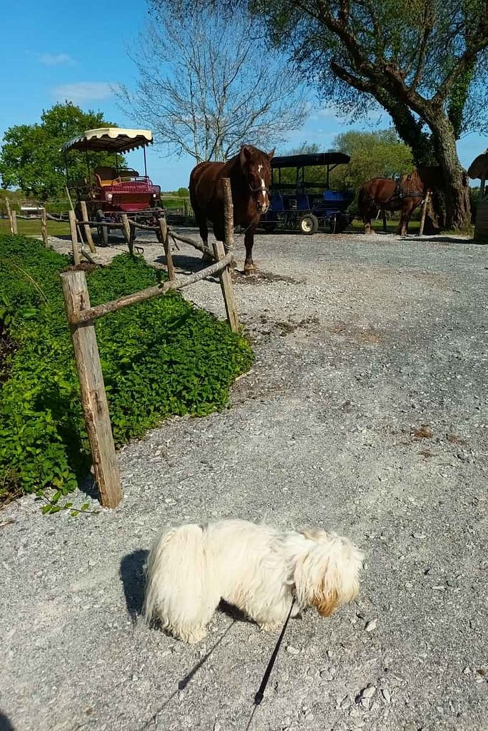 Zitou a particulièrement adoré observer les chevaux et flairer les roseaux, l’oreille en éveil à chaque bruissement. C’est aussi ça, visiter avec son chien : redécouvrir le monde à travers ses sens, ralentir, respirer, se reconnecter.