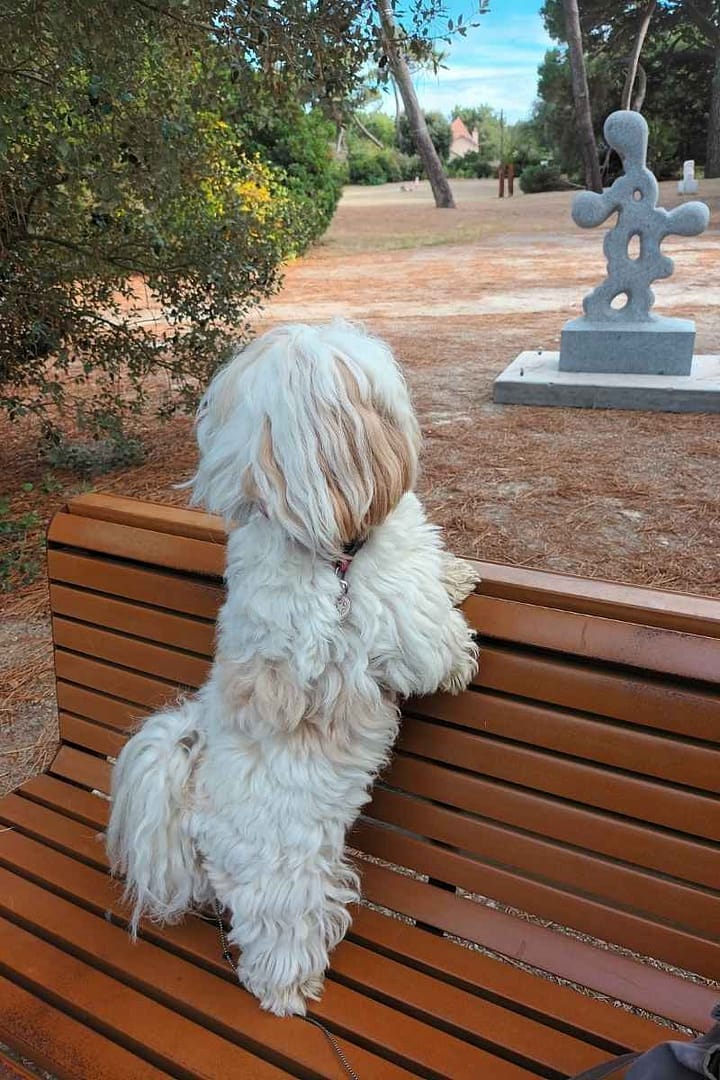 Au détour du sentier, nous avons découvert une exposition de sculptures en plein air. L’art et la nature se mêlent harmonieusement, offrant une promenade avec mon chien aussi esthétique que sensorielle.