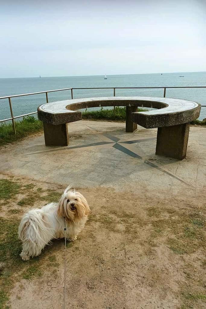 Notre objectif du jour : le blockhaus de Sainte-Marguerite, récemment transformé en œuvre d’art. Une découverte originale que je recommande si vous aimez les balades avec votre chien, avec de superbes points de vues sur la mer.