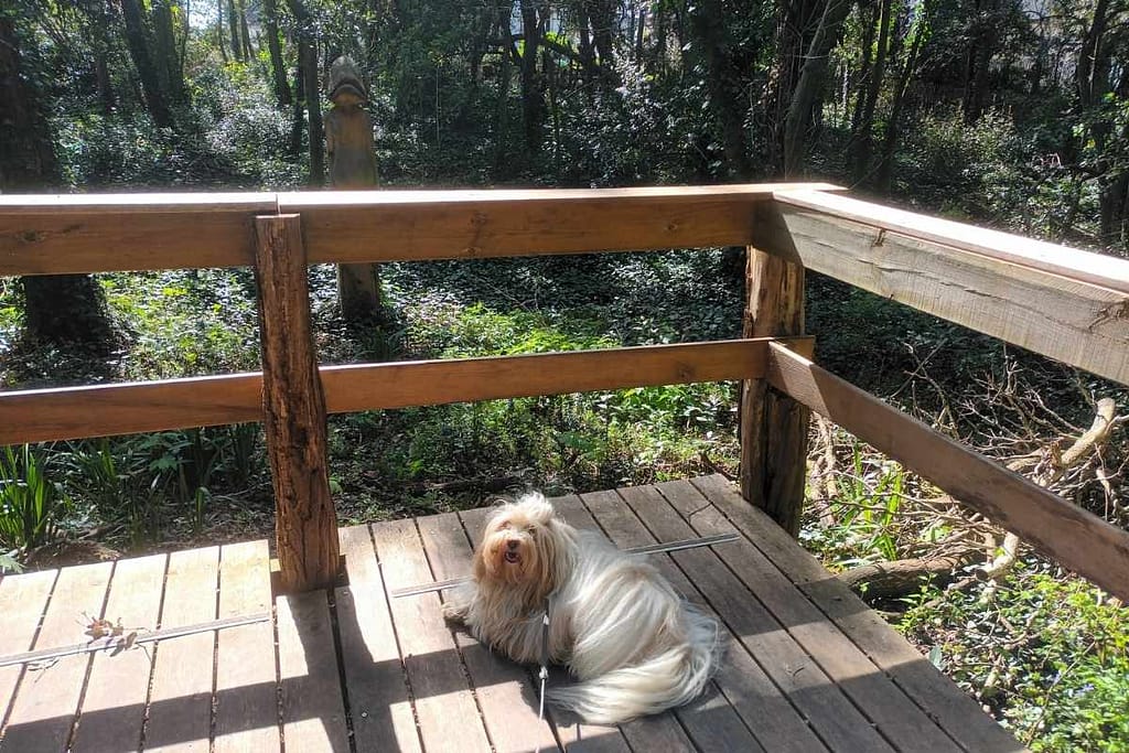 Zitou s’y déplace très bien, même si ses longs poils attrapent vite quelques feuilles et morceaux de bois au passage. C’est donc un petit détail bon à savoir avant de repartir. Pour moi, ce lieu convient surtout à ceux qui aiment découvrir un endroit singulier avec leur chien, prendre le temps de regarder, et faire une pause différente dans Pornichet.
