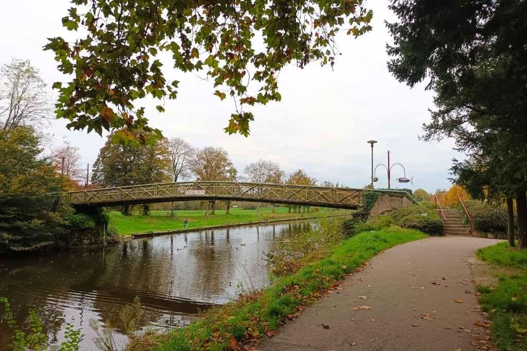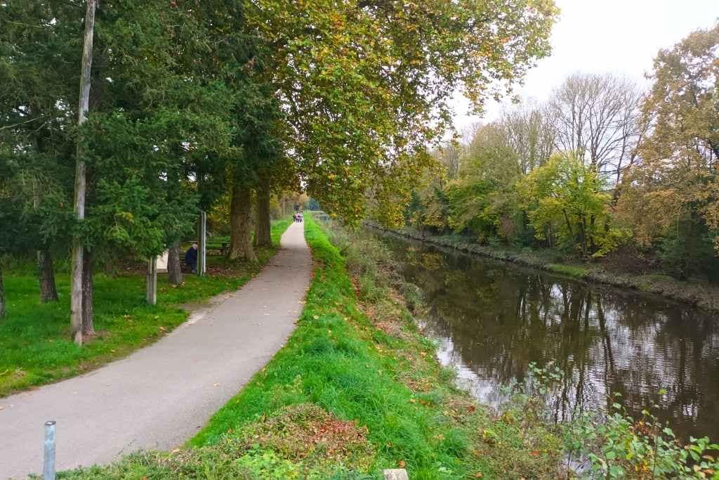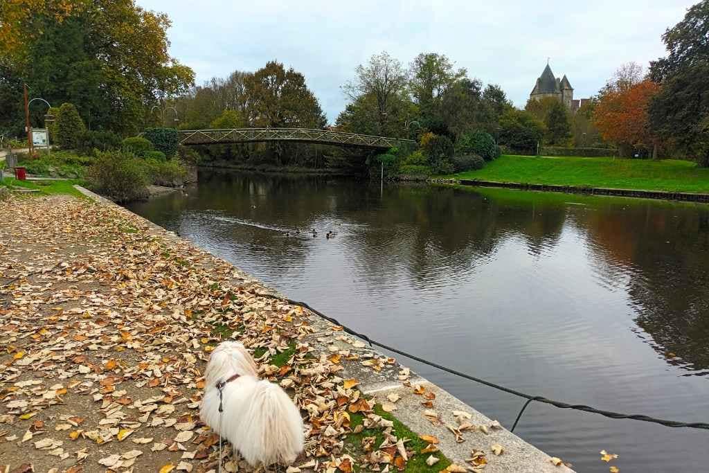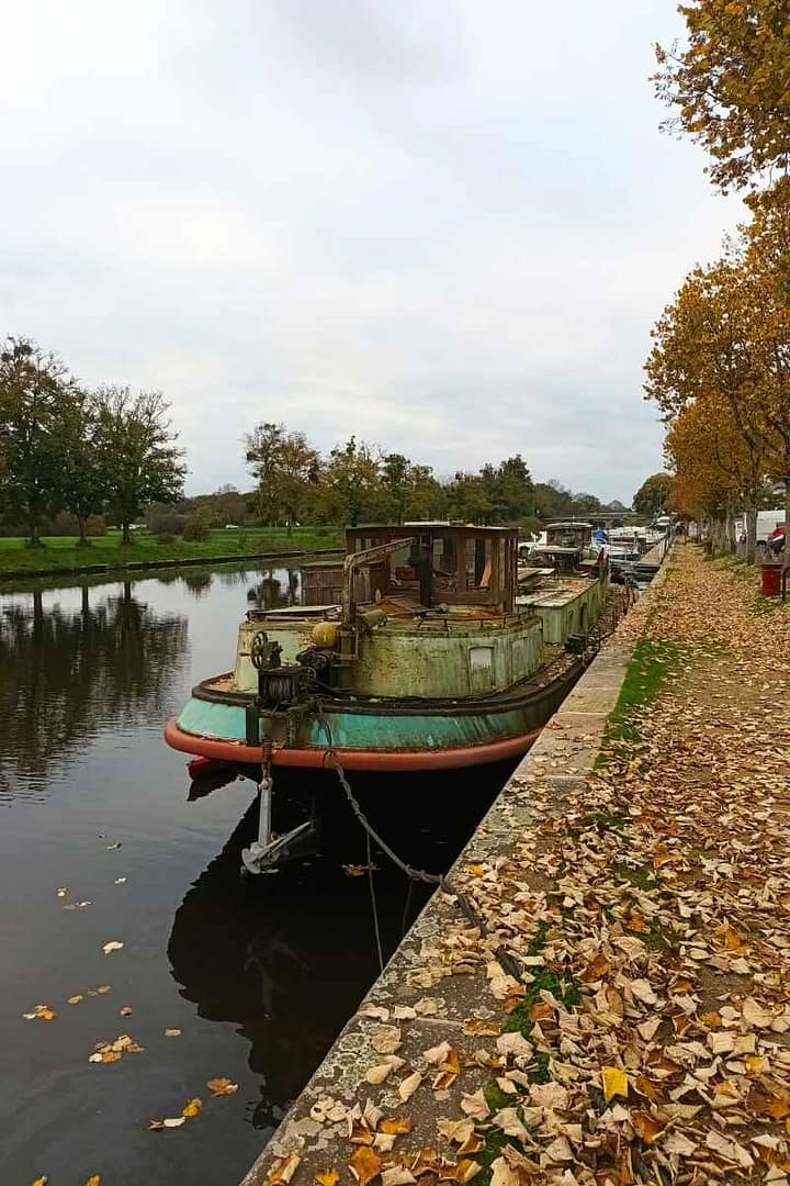 Après avoir flâné autour du château, nous revenons sur nos pas pour emprunter le chemin de halage. Ce parcours nous offre un dernier moment de tranquillité au bord de l’eau, le clapotis des vagues sur les péniches se mêlant aux bruits des oiseaux et des pas de mon chien sur les feuilles.