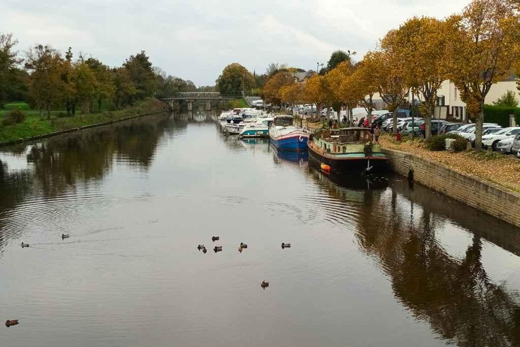 Situé à environ 35 km au nord de Nantes et à une cinquantaine de kilomètres de Saint-Nazaire, Blain nous accueille le long du canal de Nantes à Brest pour cette escapade avec mon chien. Le port Saint-Laurent, avec son ambiance paisible, sera notre point de départ. Dès l’arrivée, avant même de se garer, je ressens une sensation de bien-être en voyant des gens profiter des terrasses, un spectacle rare en automne qui rajoute une touche chaleureuse à l’atmosphère du lieu.
