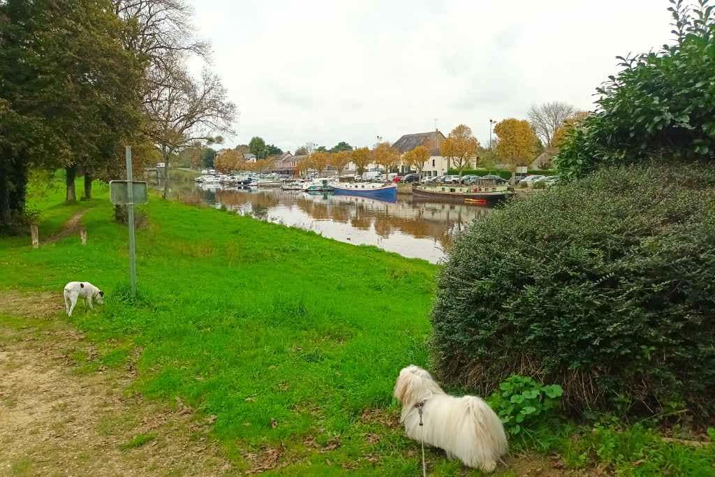 Zitou, toujours curieux, m’entraîne rapidement vers le pont où il fait sa première rencontre canine de la journée. Depuis ce point de vue, on a une belle perspective sur le port d’un côté et sur le chemin de halage de l’autre. Ce pont, tel un lien naturel entre histoire et nature, relie deux joyaux de Blain : le port et le château de la Groulais.