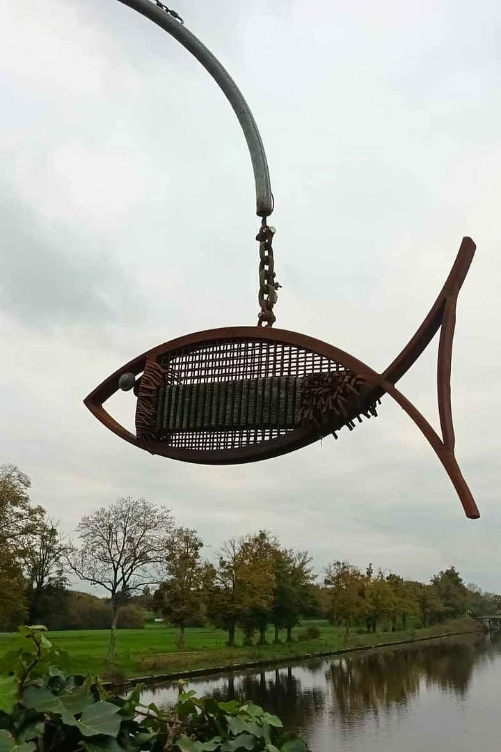 Tout le long du port, un parking offre de nombreuses places, et nous trouvons rapidement où stationner. Le port de Saint-Laurent me charme dès le début : nous longeons les différentes péniches amarrées, les unes plus pittoresques que les autres. Un peu plus loin, un pont attire mon attention, son allure me rappelant un tableau de Claude Monet. Zitou, mon fidèle compagnon, explore le lieu avec enthousiasme, tandis que je regarde les canards glisser paisiblement sur l’eau, ajoutant à cette quiétude ambiante.