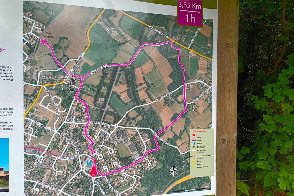 Ce circuit pédestre, d’une durée d’environ 1 h 30, est balisé en jaune sur les arbres et permet de découvrir les alentours entre petits chemins, zones boisées et paysages plus champêtres. Un panneau de randonnée présent sur place permet aussi de photographier le parcours ou de scanner un QR code pour consulter l’itinéraire.