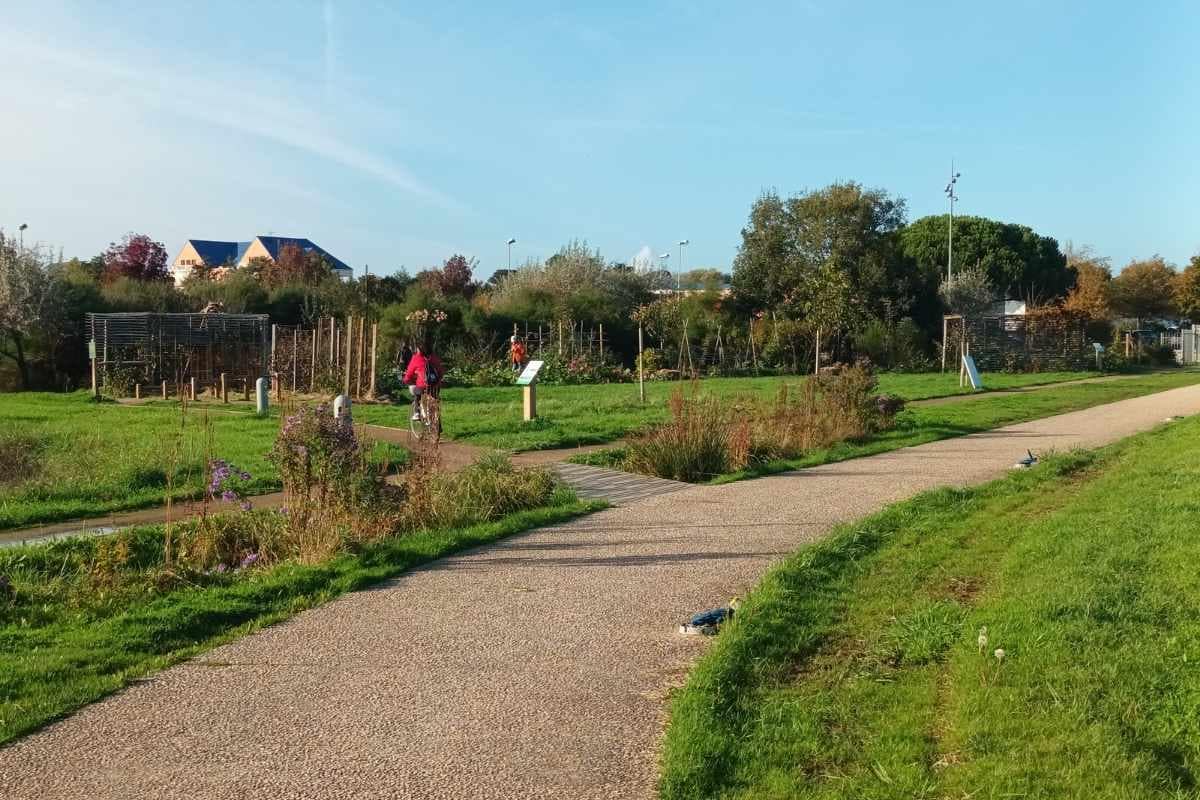 Le sentier longe successivement les espaces aménagés, le Caniparc, les marais, le potager puis l’extérieur de l’hippodrome avant de revenir au point de départ. On peut facilement adapter la durée de la sortie : demi-boucle, boucle complète, ou simple passage ciblé vers le Caniparc.