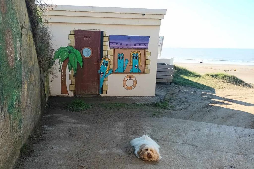 Comme d’habitude, je commence par lire le panneau de réglementation. Il indique que les chiens sont autorisés de 20h à 8h sur l’estran… sans plus de précision.
