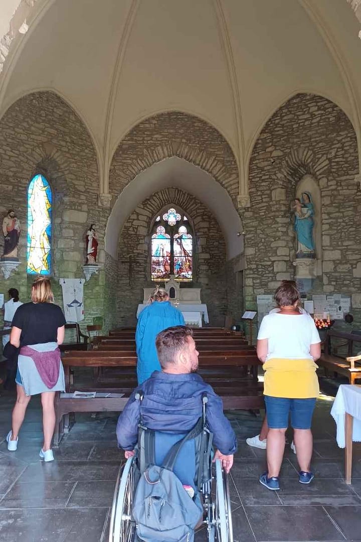J’ai fait une petite entorse aux habitudes, en portant Zitou dans mes bras, pour nous permettre de découvrir l’intérieur de la chapelle. Une première pour lui ! Une expérience paisible et pleine de curiosité, sous le regard protecteur des murs anciens chargés d’histoire.
