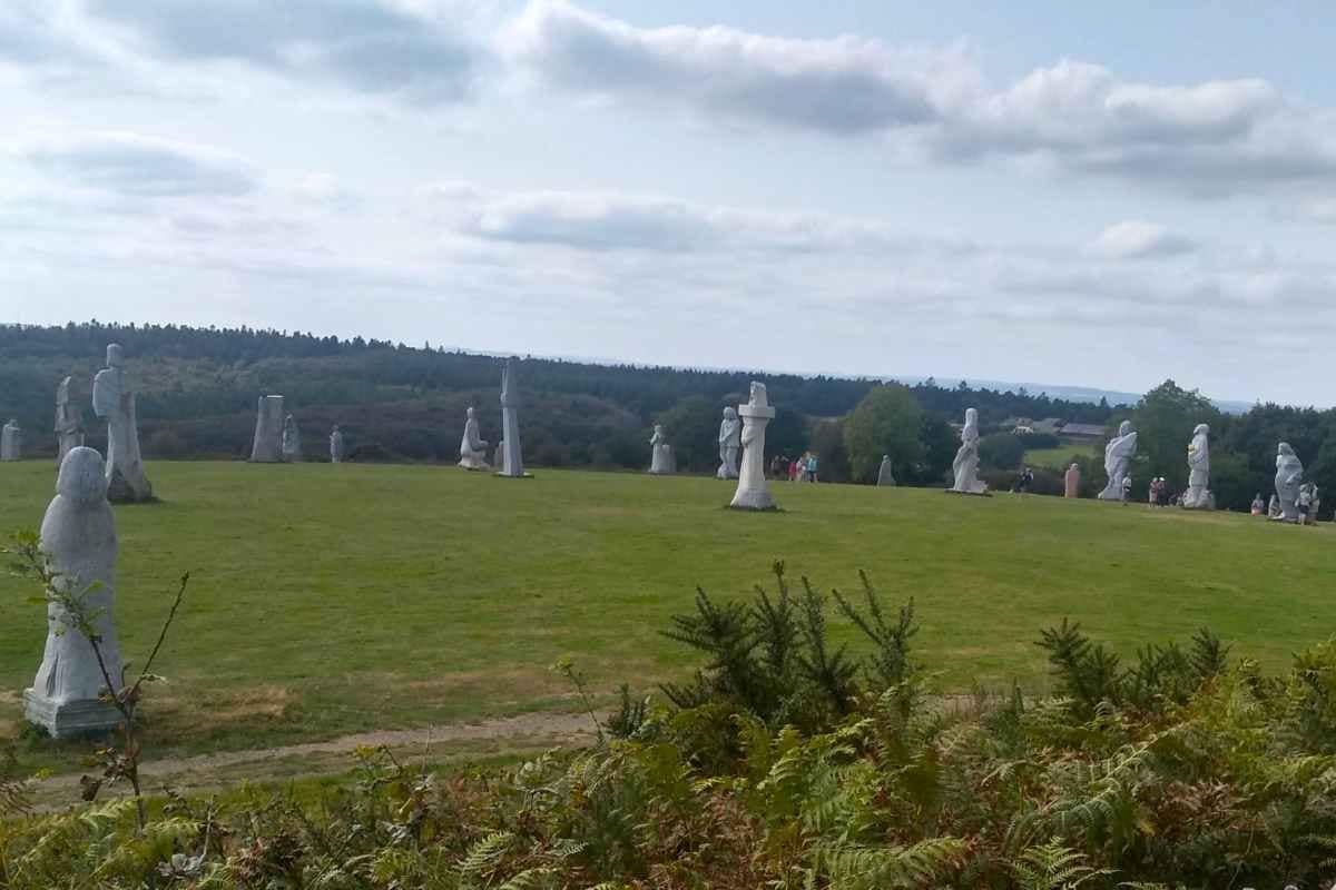 C’était juste après le confinement, ce moment où l’on retrouvait enfin notre liberté. Comme beaucoup, j’avais envie d’une escapade, d’un lieu proche mais dépaysant. En cherchant une destination, je suis tombée sur un projet intriguant situé à Carnoët, dans les Côtes d’Armor : la Vallée des Saints, perchée sur la colline de Quénéquillec. Ce lieu, parfois comparé à l’île de Pâques – un de mes rêves de voyage – semblait parfait pour une journée d’aventure. En route pour la Bretagne !