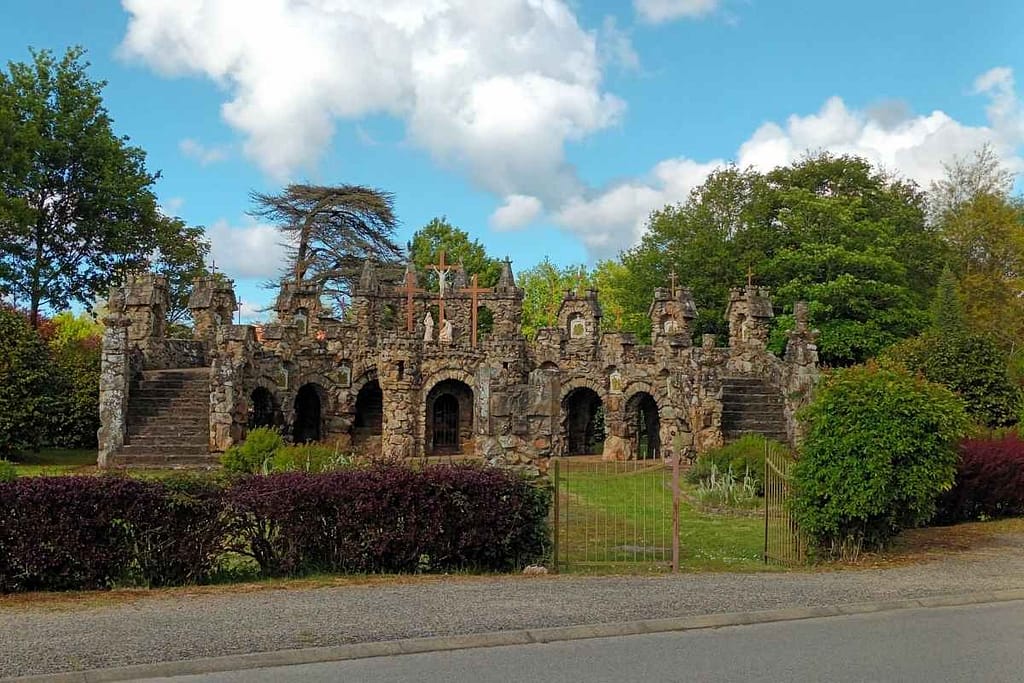 Situé dans le bourg de Frossay, en Loire-Atlantique, ce calvaire ne ressemble à aucun autre. Avec son allure de décor de film, ses influences baroques mêlées à des accents exotiques, on pourrait presque l’imaginer échappé d’un monde à la Tomb Raider ou du Seigneur des Anneaux.